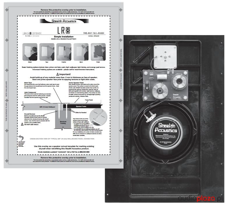 Model LR8G firmy Stealth Acoustics to dwudrożny, pełnozakresowy system głośnikowy, który po instalacji staje się całkowicie niewidoczny. Głośnik montowany jest bezpośrednio do standardowych konstrukcji ściennych lub sufitowych, dzięki solidnej ramie nośnej. Aktywna powierzchnia membrany, którą można pomalować, jest zintegrowana z ramą panelu, tworząc jednolitą strukturę gotową do estetycznego wykończenia.