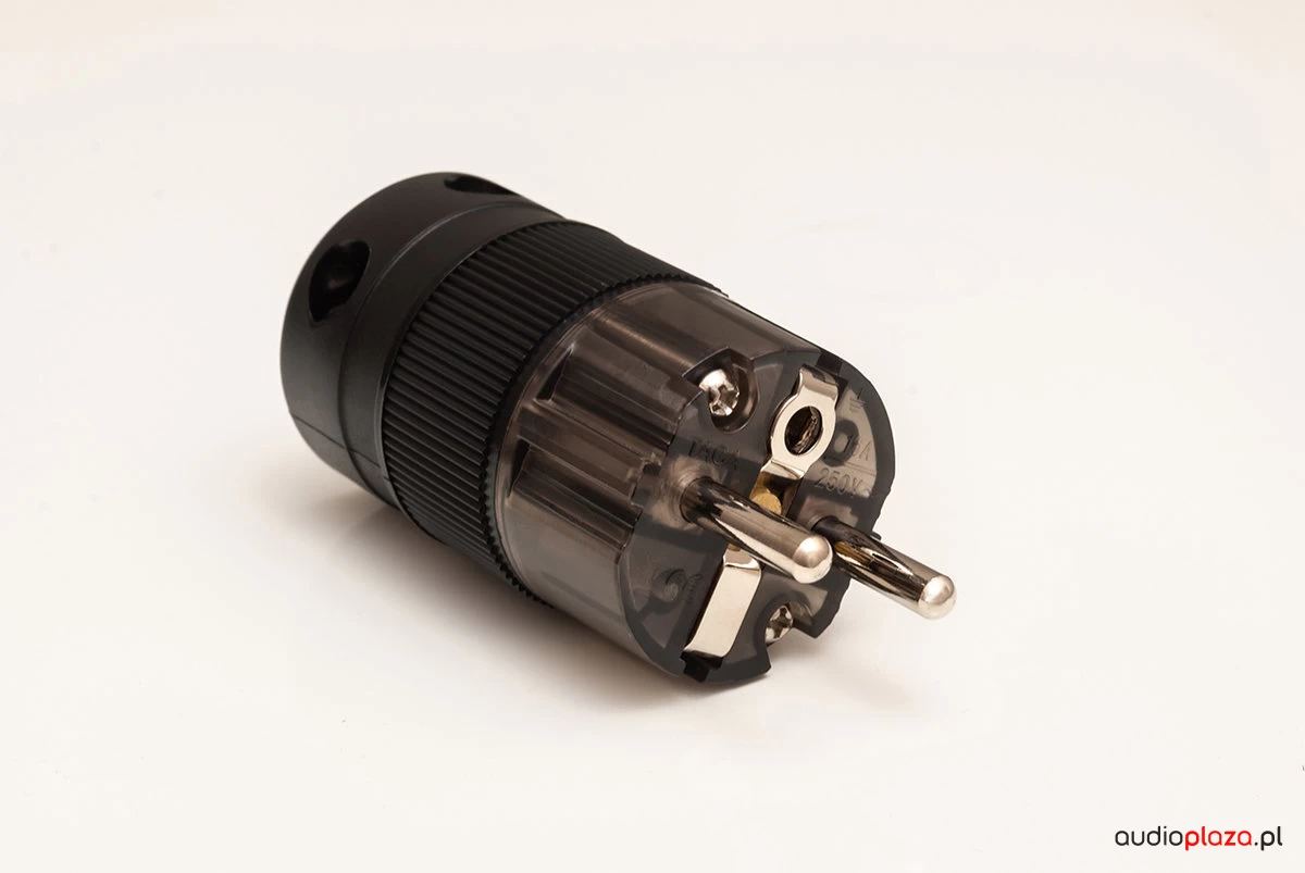 Wysokiej jakości wtyczka Schuko i złącze IEC z bolcami i uziemieniem wykonanymi z rodowanego niemagnetycznego mosiądzu zapewniają świetne przewodzenie, izolację i połączenie.