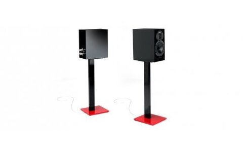 Podstawki pod głośniki Esse Stand to kontynuacja sprawdzonego w podstawkach tej firmy łączenia metalu ze szkłem w kolorze czarnym i czerwonym.