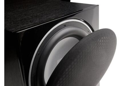 Obudowa posiada port bass reflex skierowany w dół, co oznacza łatwiejsze ustawienie i lepsze dopasowanie akustyczne do pomieszczenia. Głośnik niskotonowy jest potężnym, 12-calowym przetwornikiem o długim skoku, opracowanym z myślą o precyzji. Membrana jest wykonana z czystego, lekkiego aluminium dla lepszej reprodukcji szczegółów i maksymalnej sztywności, podczas gdy ciężki układ magnetyczny steruje ogromną, 4- warstwową, chłodzoną powietrzem cewką o długim skoku. Aby zapewnić najwyższą wydajność nawet w trudnych warunkach, subwoofer posiada wbudowane obwody zabezpieczające przed przeciążeniem i zniekształceniami.