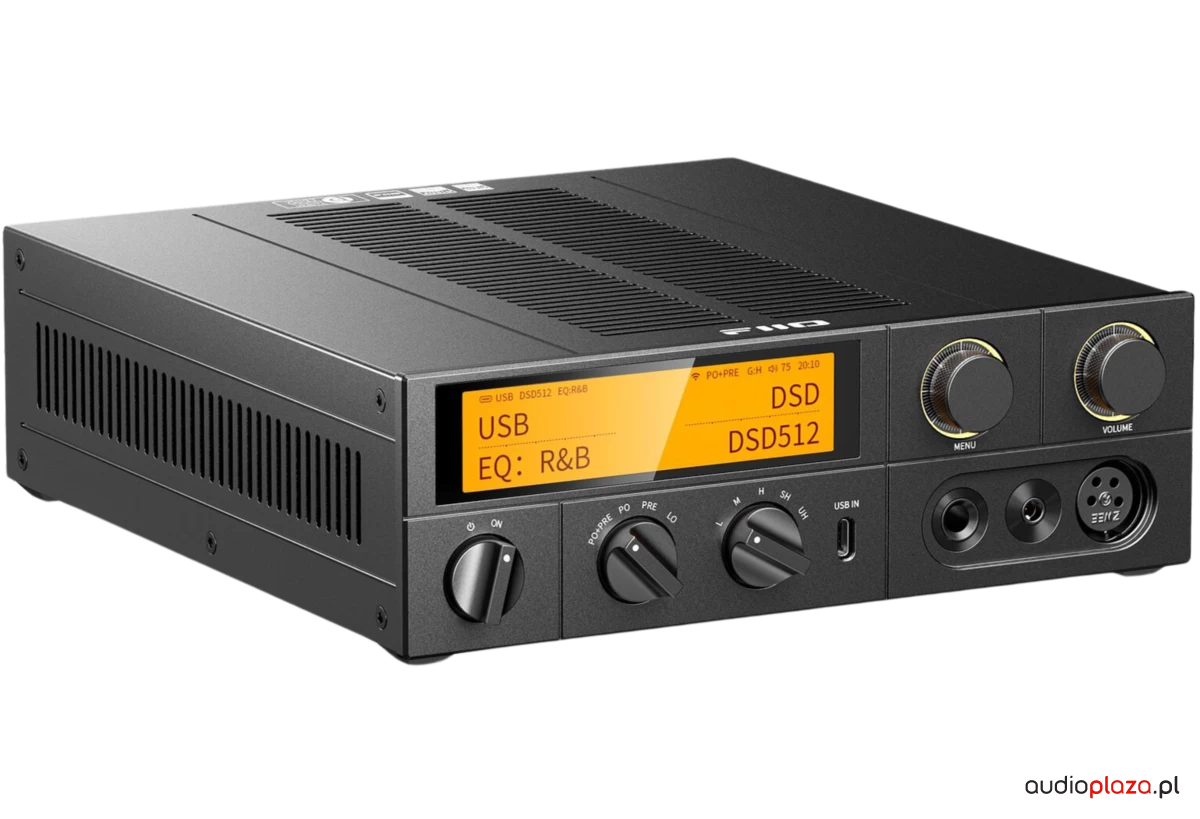FiiO K17 to wysokiej klasy stacjonarny wzmacniacz słuchawkowy z wbudowanym przetwornikiem DAC, łączący nowoczesny design z zaawansowaną technologią audio. Wyposażony w podwójne układy DAC AKM AK4499EX oraz wzmacniacz słuchawkowy klasy AB, zapewnia wyjątkową jakość dźwięku zarówno na wyjściu zbalansowanym, jak i niezbalansowanym. Idealny dla audiofilów, oferuje 31-pasmowy korektor parametryczny (PEQ), tryb USB DAC oraz obsługę formatów DSD512 i PCM 768 kHz.