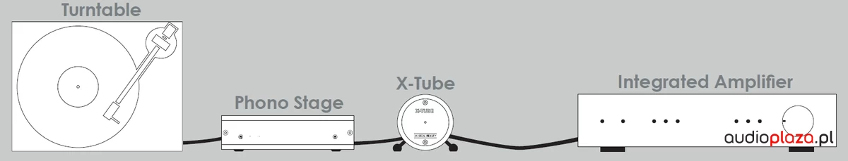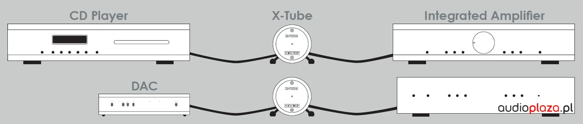 X-Tube to brakujące ogniwo pomiędzy źródłem dźwięku a wzmacniaczem. Podłącza się go bezpośrednio między urządzeniem źródłowym a końcówką mocy.