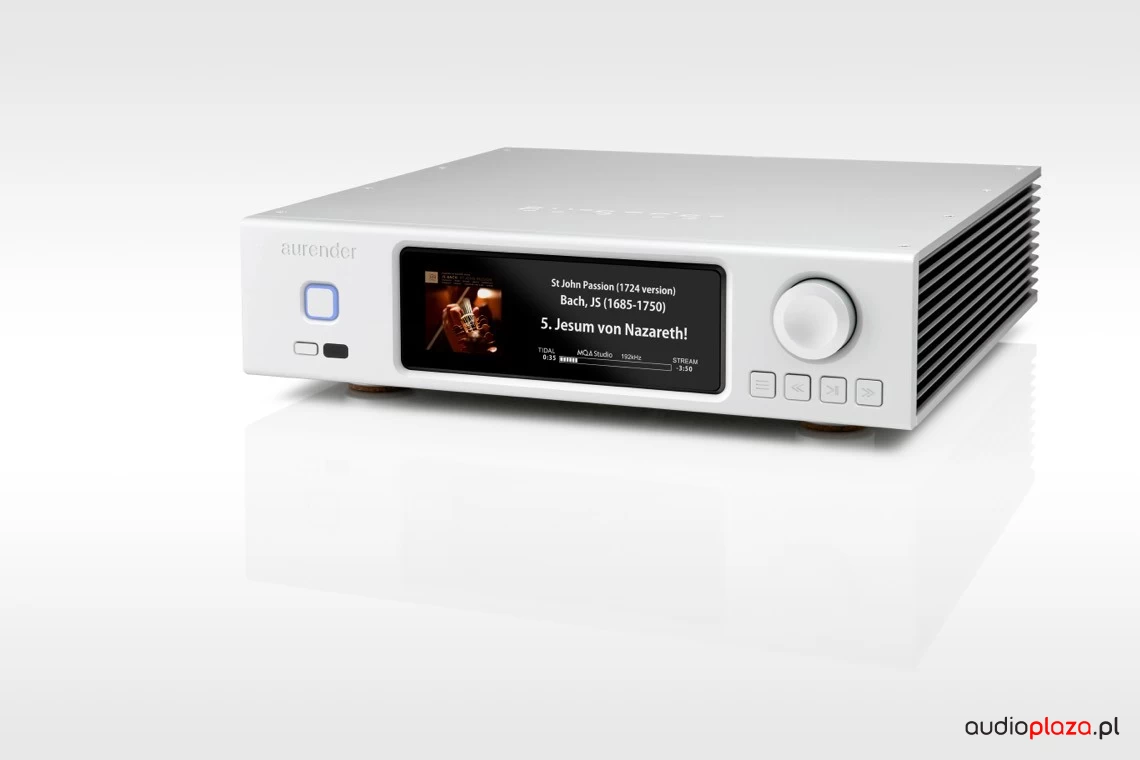 • Sterowanie: Aplikacja Aurender Conductor (iOS, Android), pilot IR, przyciski na froncie