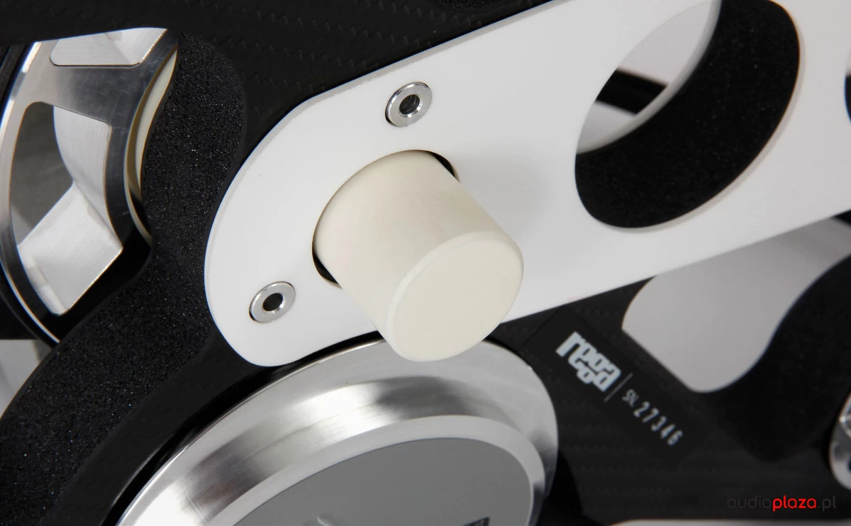 Model Naia wyposażono w unikalny zespół wrzeciona i łożyska centralnego wykonany z materiału ZTA cyrkonowo-hartowanego tlenku aluminium. Ten wyjątkowo odporny na ścieranie kompozyt został pierwotnie opracowany do zastosowań w przemyśle ciężkim. Teraz, dzięki swojej twardości i jednorodnej strukturze, idealnie sprawdza się w precyzyjnej mechanice gramofonu.