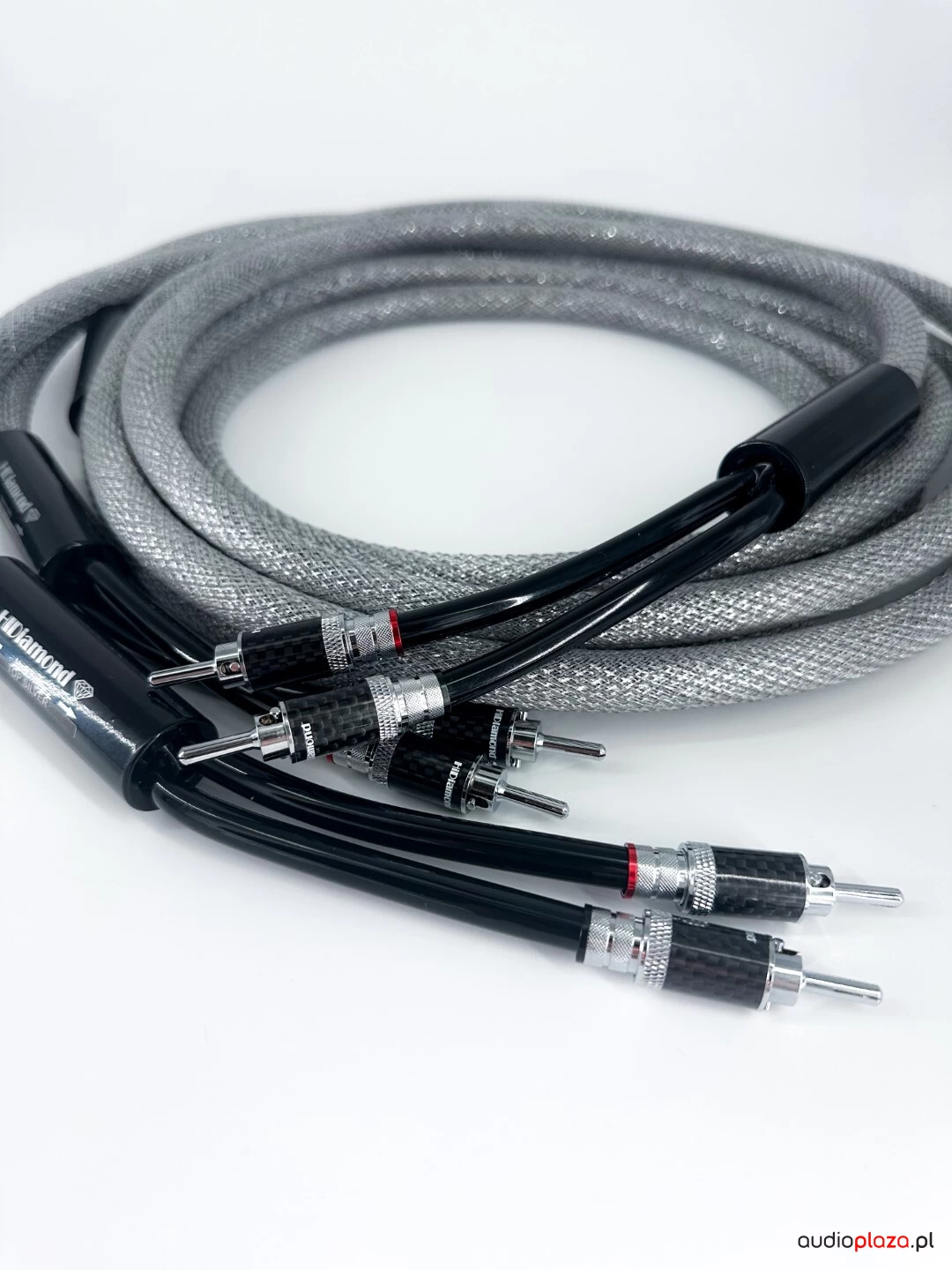 Przewód posiada skrętną strukturę wewnętrzną z 6 żyłami o przekroju 2,5 mm², a jego końcówki to autorskie złącza pokrywane rodem, osadzone w karbonowych obudowach obrabianych technologią NFC. Takie rozwiązanie gwarantuje wysoką stabilność mechaniczną i minimalne straty sygnału. Całość chroniona jest izolacją XLPE i solidnym płaszczem zewnętrznym.