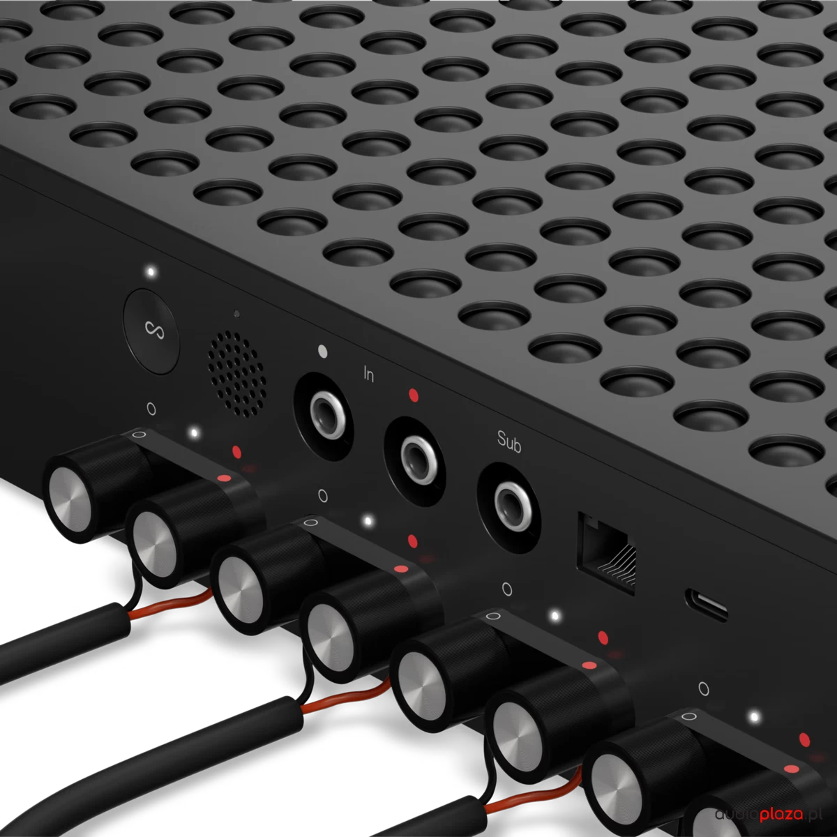 Zastosowanie tranzystorów GaN w stopniu klasy D zwiększa sprawność i redukuje straty energii, jednocześnie poprawiając szybkość przełączania. System post-filter feedback analizuje sygnał po filtrze wyjściowym, co przekłada się na lepszą liniowość, wyższą przejrzystość i stabilność pracy z różnymi typami kolumn.